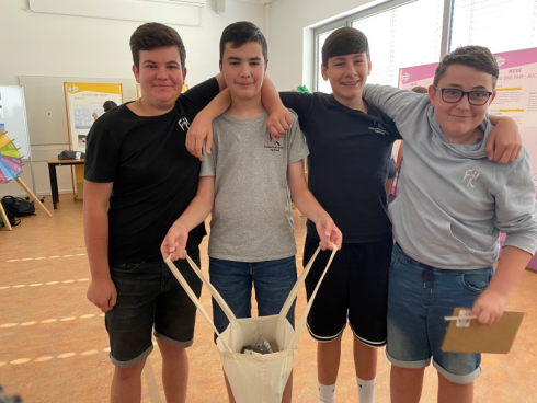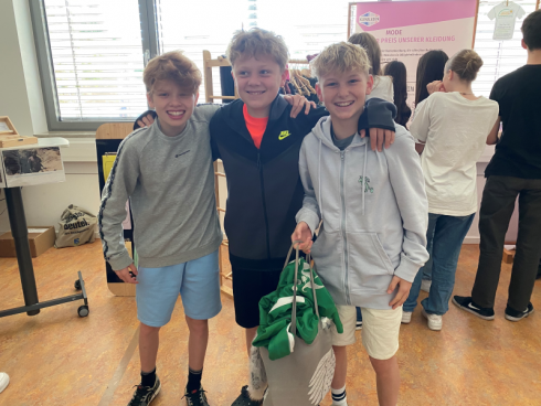 Im zweiten Teil wurde jeder Gruppe ein Thema zugeteilt, über das sie sich an den verschiedenen Ausstellern informieren sollte. Mit Beispielen aus der Ausstellung präsentierten die Schüler*innen ihren Bereich. Bei ihrem nächsten Einkauf werden die Schüler*innen sicherlich mehr darüber nachdenken, welche Produkte sie in den Einkaufskorb legen.