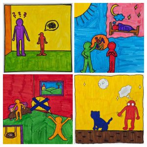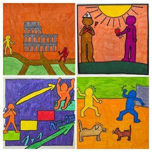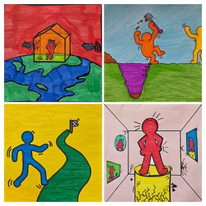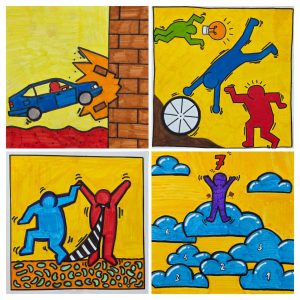 Die Klasse 9f wurde vom Künstler Keith Haring dazu inspiriert Redewendungen visuell umzusetzen.
