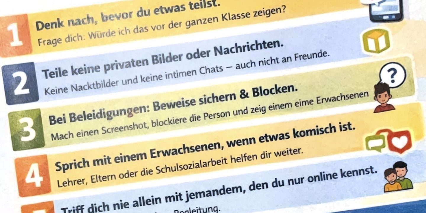 Inhalt war u.a. die Bewusstmachung zur Thematik „Recht am eigenen Bild“ sowie Urheberrecht. Außerdem sprachen die Schülerinnen und Schüler über Cybermobbing. Erarbeitet wurde auch, welche Straftaten sich daraus ergeben könnten. Die Themen „Hate Speech“ und „Cybergrooming“ nahmen einen großen Raum ein, vor allem mit dem Schwerpunkt, dass wir alle aufeinander achten sollen.